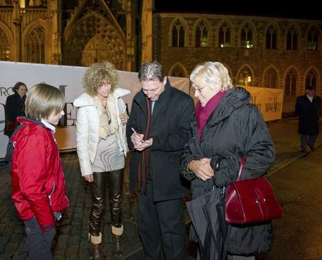 (jef vermassen deelt handtekeningen uit aan fans)