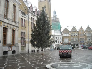Aan de ingang van het stadhuis van Roeselare staat er reeds een kerstboom.