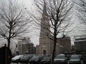 Een foto van de Sint Amandskerk vlakbij de stationsbuurt.