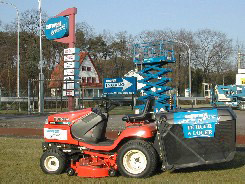 Hij wel want dan kan hij de hele tijd blijven zitten en pinten drinken binst dat hij het gras afmaait.