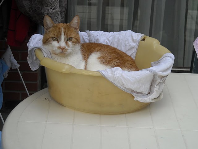 Ondanks de hitte was Ginger, onze roodharige kater toch aktief bezig