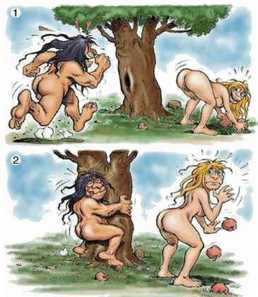 “Dat is gemakkelijk” antwoord de man bij het zien van het eerste plaatje “Ik zie een man en een vrouw die aan het neuken zijn.”