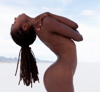 Waarschijnlijk hing er een tak in de weg zodat ze niet genoeg zonlicht op haar frele lijf kreeg, want ze was schaars gekleed in o.a. een pusch-up bra die duidelijk accentueerde wat ze in feite niet heeft.