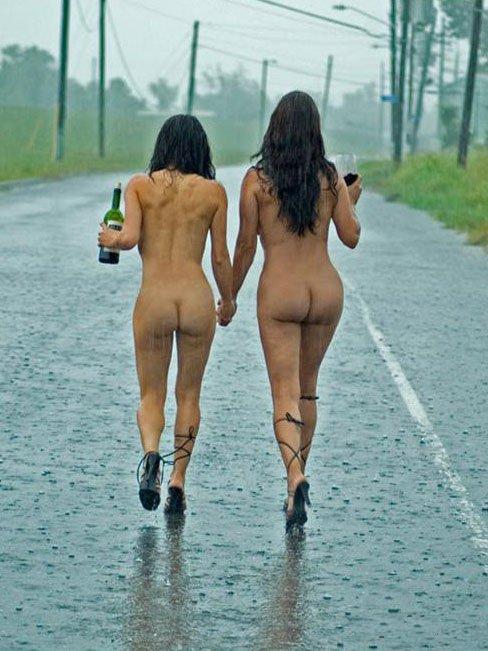 Het voordeel van naakt zijn is wel dat die relschoppers nergens “houvast “aan de kleding hebben of eh….. zouden de dames van de eerste foto maar nét op het nippertje ontsnapt zijn en had één zo’n radraaier toch nog haar veter vast gekregen ? De dames zijn dus bofkontjes ,kun je zó zien !