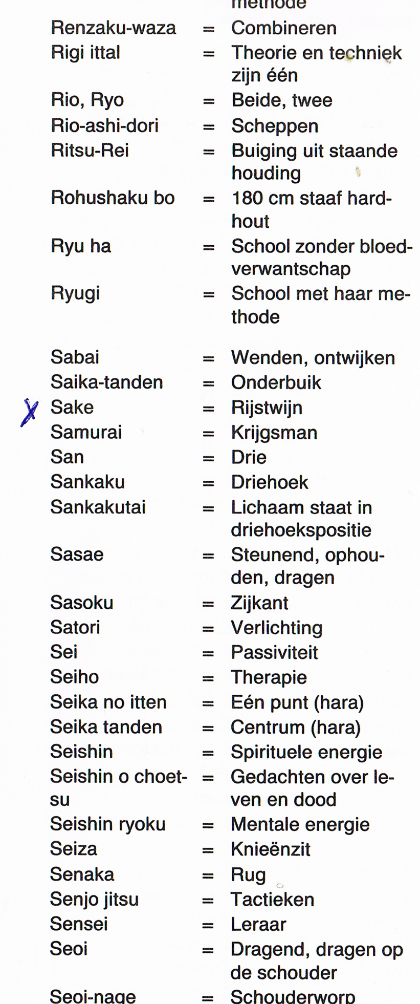 Aan het einde van zo’n boek vind je meestal een lijst met japanse woorden die in de desbetreffende krijgskunst gebruikt worden.
