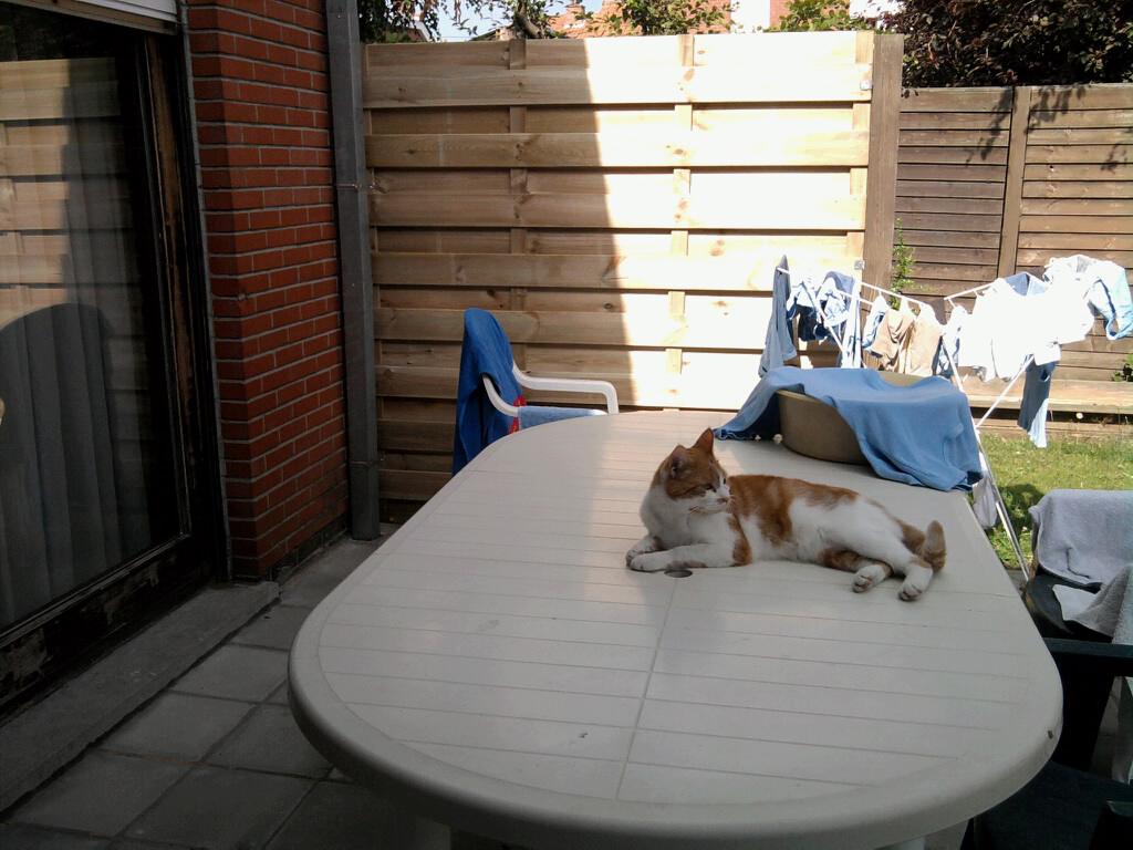 Goede morgen suske! Je zal het niet geloven, maar ook wij hebben een schuttingetje gezet, zij het dan in de vorm van een prieeltje met een bankje ervoor: zo zien we die lelijke villa achteraan de tuin niet meer joepie!