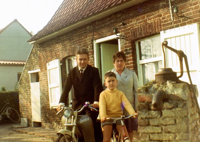 Volgens mij zit vader op een Flandria bromfiets, als ik het goed kan zien. oma