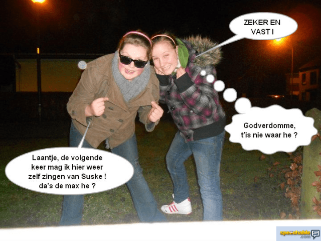 Ongelooflijk Suske, waar heb je dat nu weer vandaan gehaald? Ik hoop dat je webbies inderdaad op de foto klikken, anders hebben ze héél wat minder lol dan ik nu had! *wink, big smile*