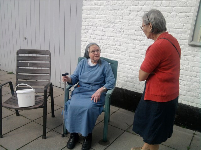 Daar verblijft een non waar ze ooit mee samen school liep.