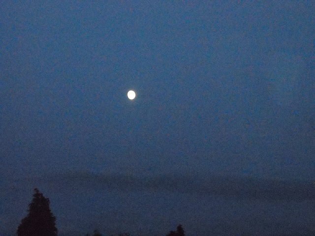 een foto van de maan genomen via het venster van onze badkamer