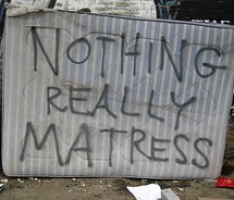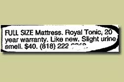 Die matras van Nonkel Juul ligt toch hoop ik wel búiten op een koper te wachten hé!