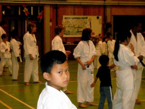 Gisteren nog maar eens karatetraining wezen geven aan het klein grut.