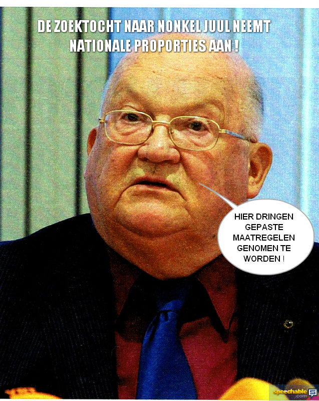 Bieke en haar vriendinnetjes heeft hij urenlang ondervraagd en uitgebreid gefoullieerd, maar tot op heden heeft zijn doortastende aanpak niets spectaculairs opgeleverd, behalve dat Mielke vertelde dat sedert de verdwijning van nonkel Juul zijn mama hele dagen weent en depressief is.