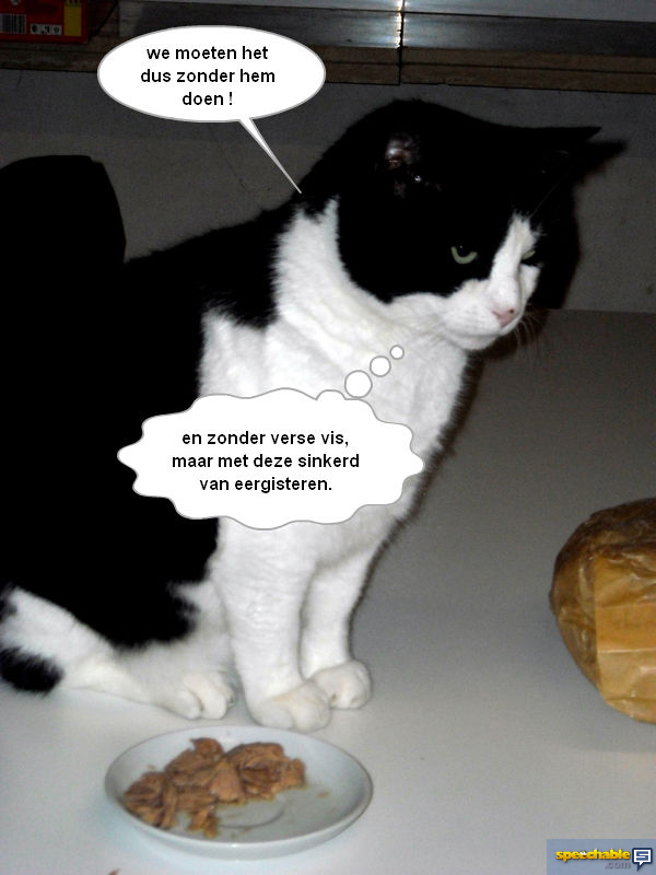Prachtige poezen log, misschien heb ik nog wel wat verse vis voor de katten.