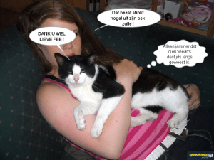 Ongelooflijk schitterend fotoverhaal, waar blijf je het toch uithalen Suske? Heerlijk gelachen, dankjewel! Ik wens je dit weekend een goede fee toe, die poesjes voor jou zal toveren *wink, big smile*