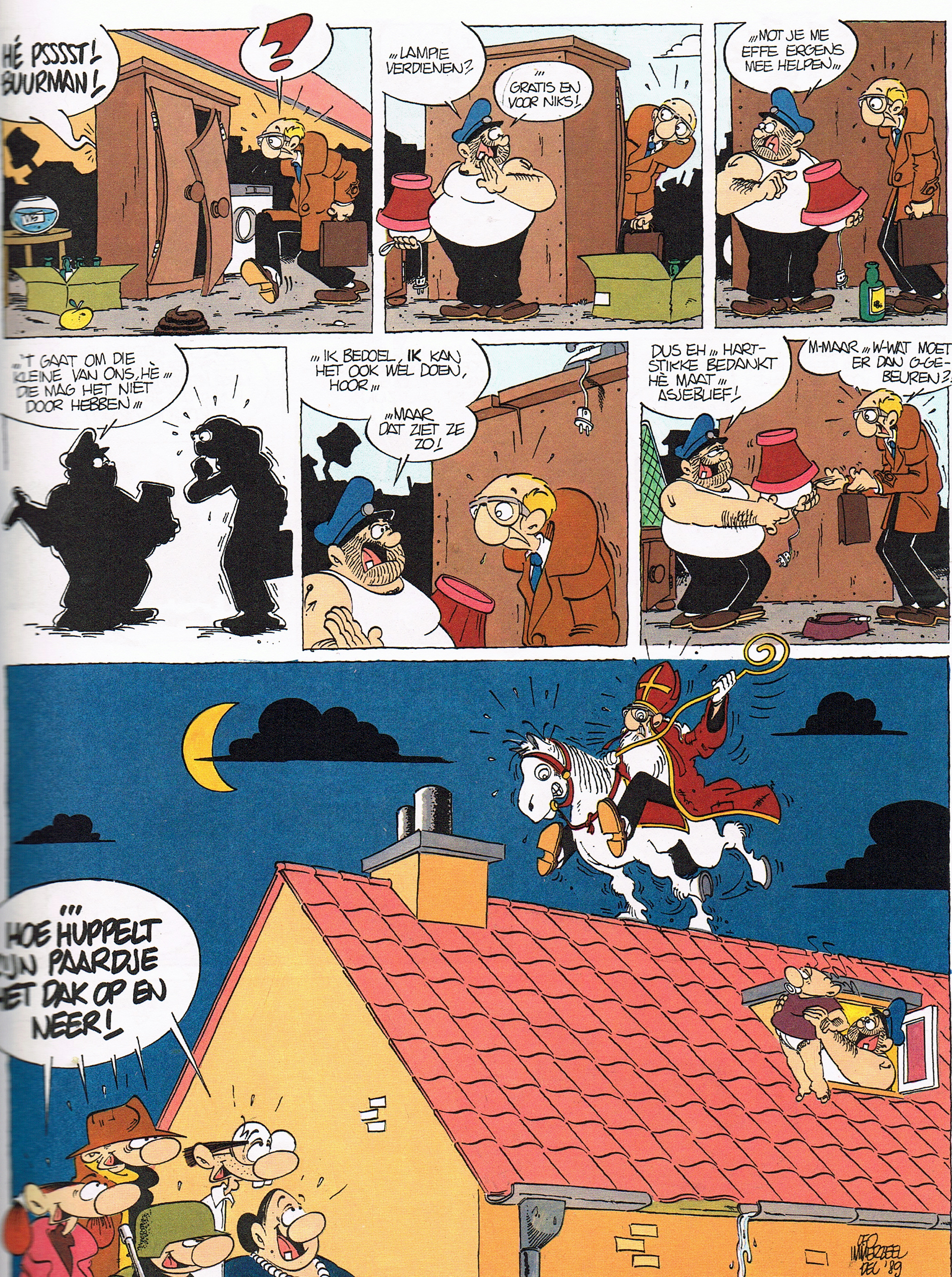 Een kameraad van me is ook bij zo’n groep en ze moesten om de beurt sint spelen, en het jaar dat hij aan de beurt was ging ie ergens een huis binnen en de kleine zei, dat is de sint niet, dat is dikke bér