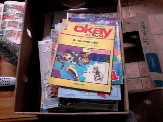 deze morgen bracht OLLIE bekend van http://hetblunderboekvanollie.blogspot.com/ een doos strips. Deze strips moesten dringend weg van TV. De doos in huis houden was “op leven en dood” voor Ollie.