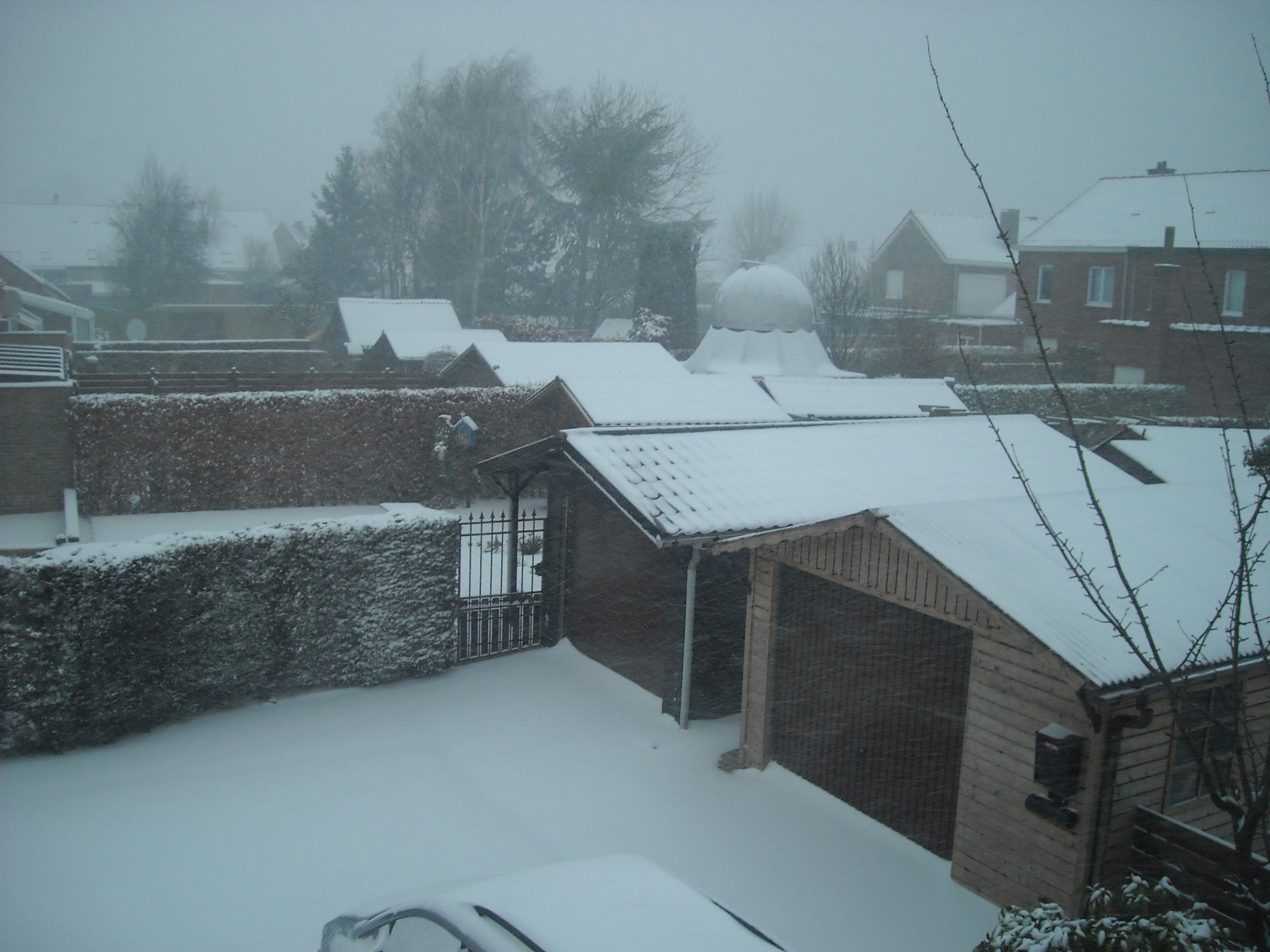 De sneeuw was hier rond 15 u 30 beginnen vallen en stilletjesaan was alles in een wit deken ingepakt.