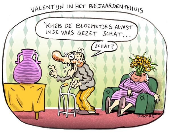 Om het bejaardentehuiscartoontje kan ik wel lachen