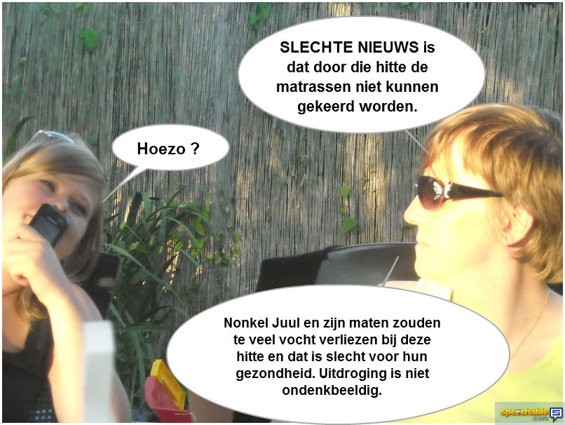 Verstandig!! Dit weer is weer om zo mogelijk zo weinig mogelijk te doen, dus zeker geen matras keren!!