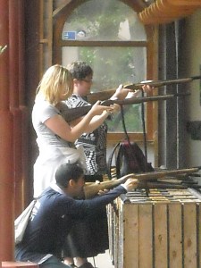 Ze wordt tenslotte gered door deze dolle schutters die het beest ondersteboven schieten.