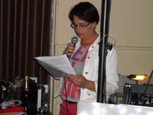 mijn schoonzus plaatst een woordje om iedereen te verwelkomen.