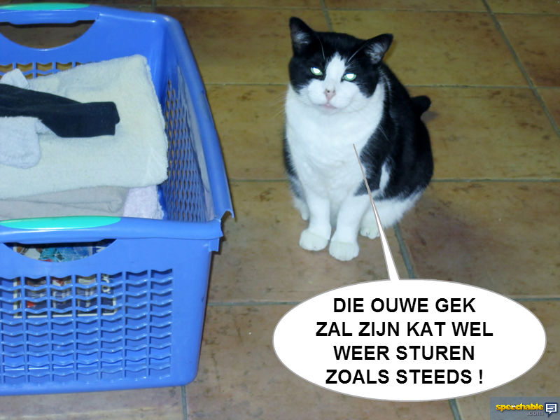 De kat in de mand met gewassen wasgoed, lijkt mij geen slim plan.