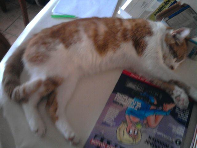 maar hier moest ik aan denken toen ik deze morgen deze kattenkop over onze omheining zag koekeloeren.