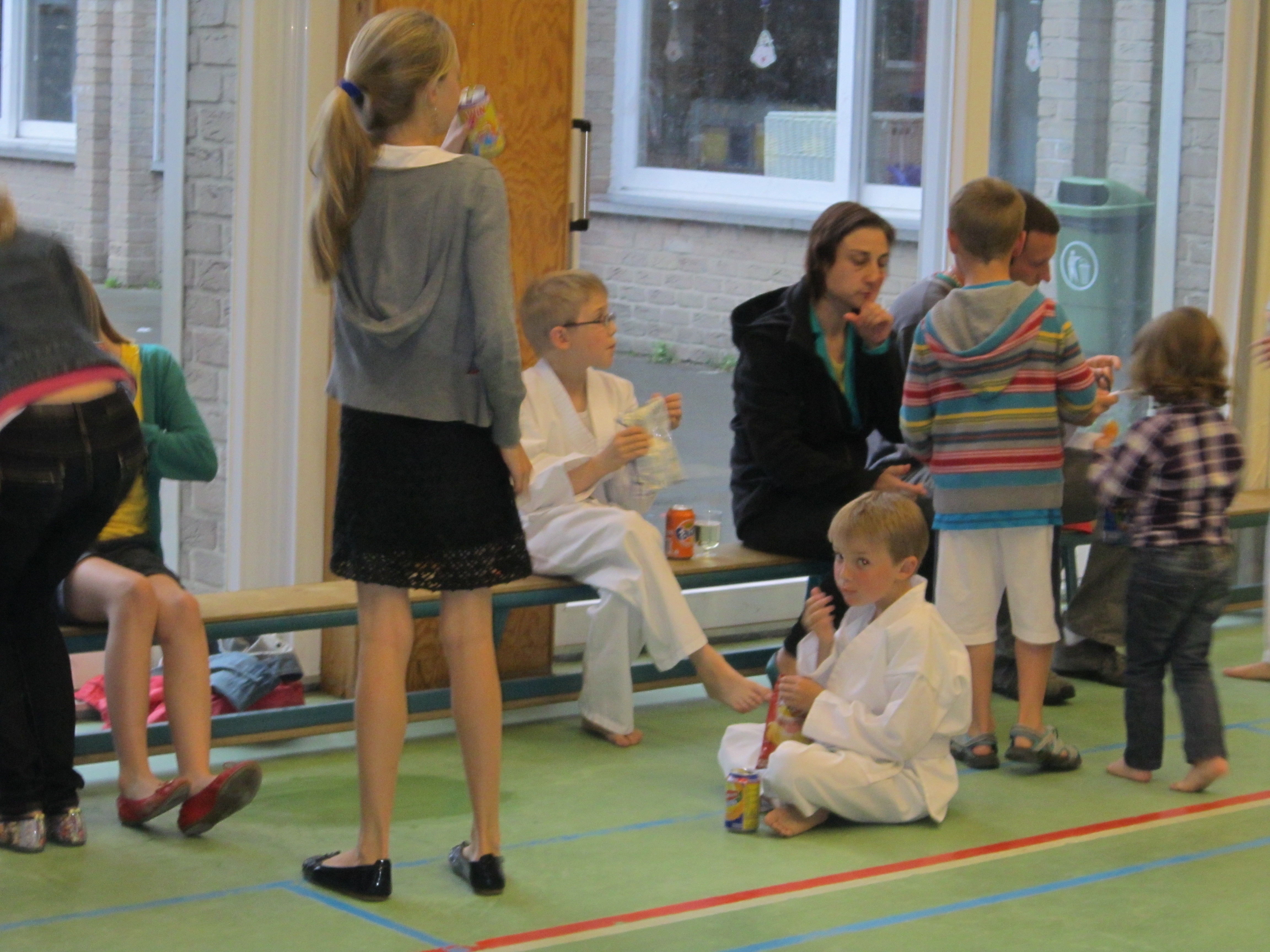 De karateclub sluit het sportjaar af met demonstraties en natje en droogje achteraf.