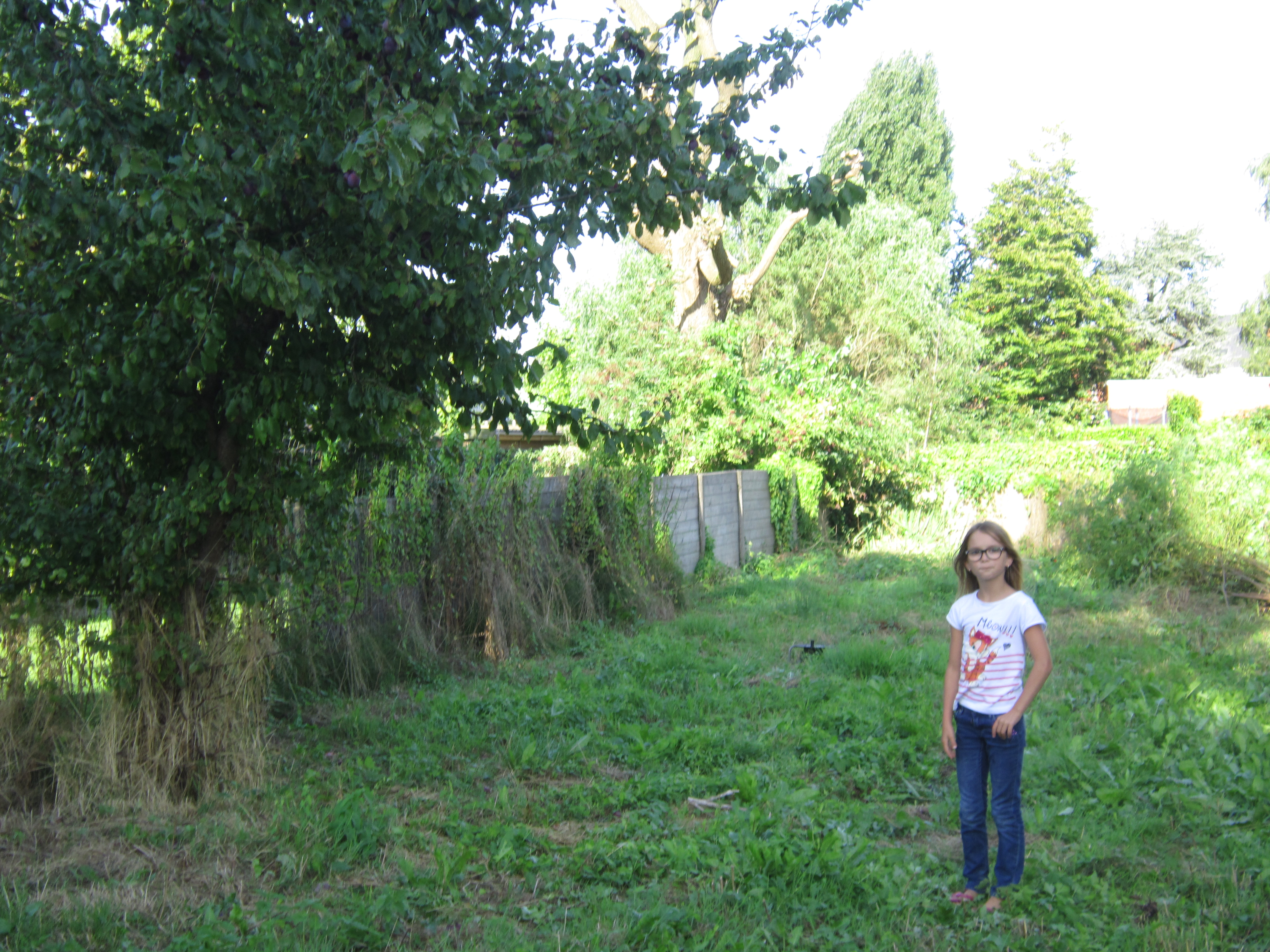 een van de kleindochters van de oude dame in de tuin