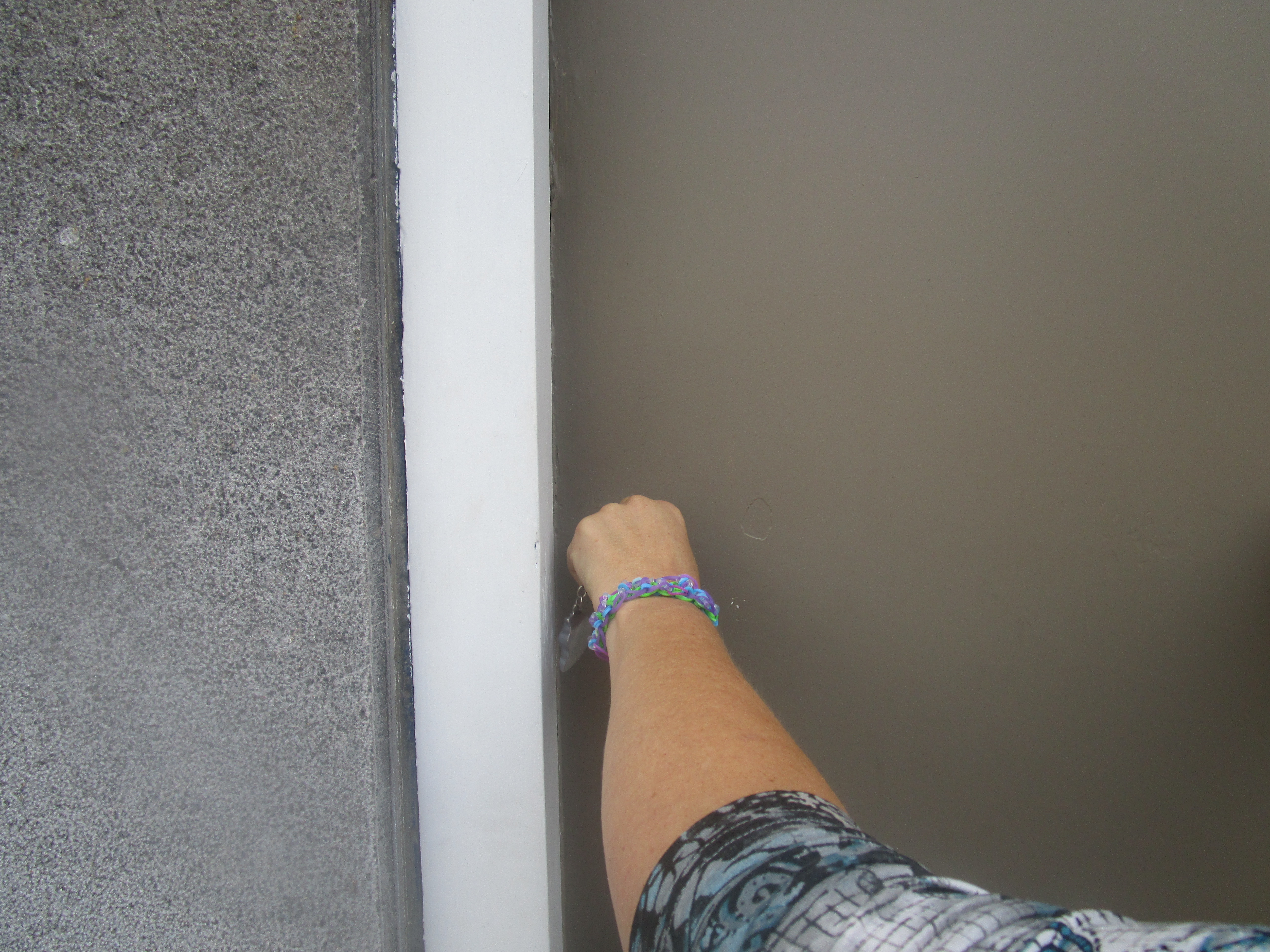 Ik reed eerst naar huis om de boodschappen uit te laden en tevens wat gereedschap te nemen om dan naar Leen te rijden. Een kwartier later stonde Leen, Brit en ikzelf voor het huis van Sam. Leen had een ijzerzaag op de kop kunnen tikken. Dit zou dus een makkie wezen. Een buurvrouw komt langs en vraagt wat we aan het doen zijn. Leen vertelt de dame wat er zoal gebeurd is. Dan schiet er me iets te binnen. Ik vind het raar dat zo’n systeem zo makkelijk kan blokkeren. Hier klopt iets niet of het moet zijn dat Sam ook al aan een geloten deur heeft moeten staan. Ik neem de ijzerzaag en begin aan het werk. Ondertussen praten de dames rustig verder en huppelt Brit op het voetpad doelloos rond zoals alleen kinderen dit kunnen. “HELA ! WAT GEBEURT ER !?”