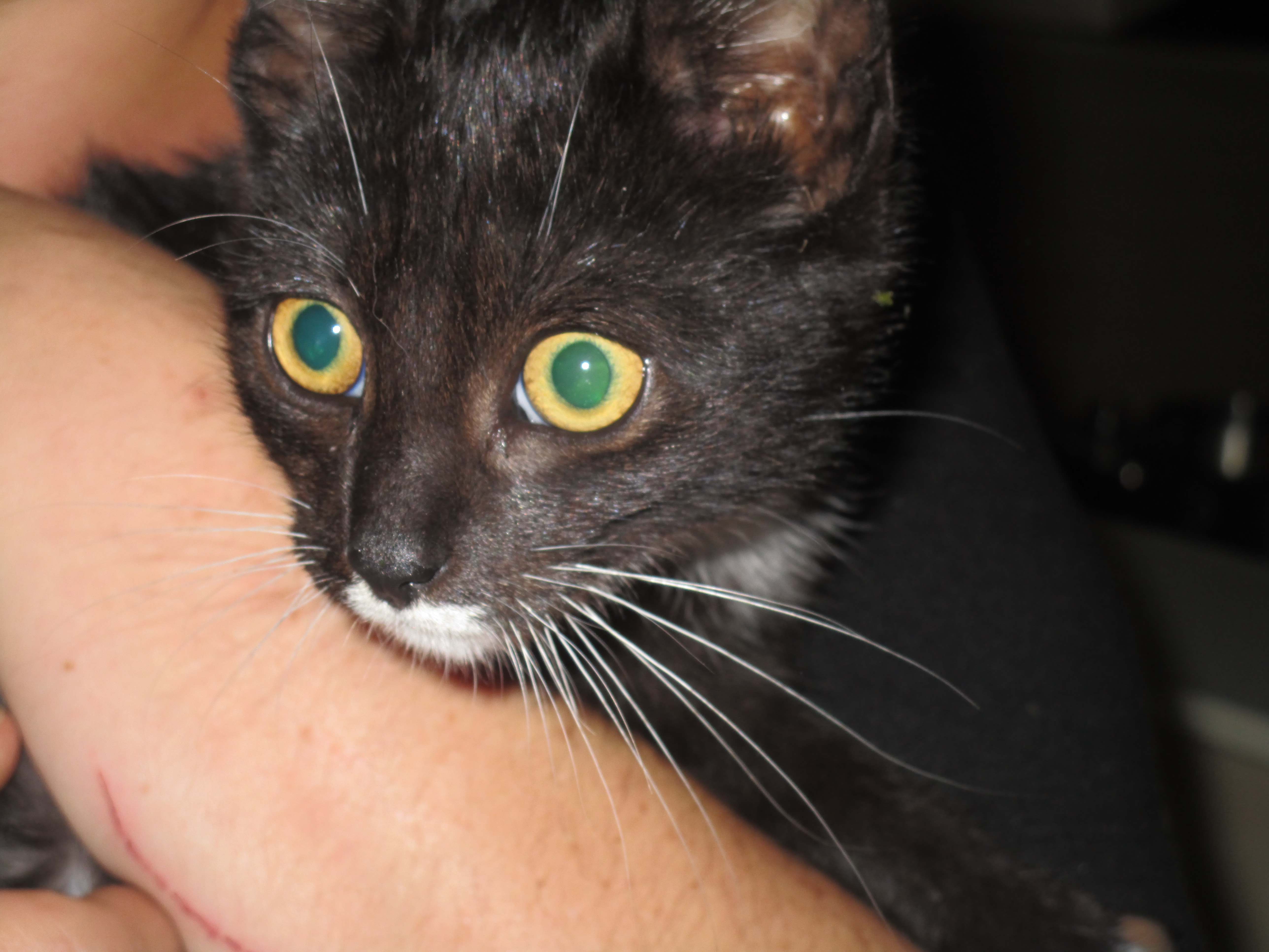 Wat een mooie kat met groene ogen en witte pootje 🙂