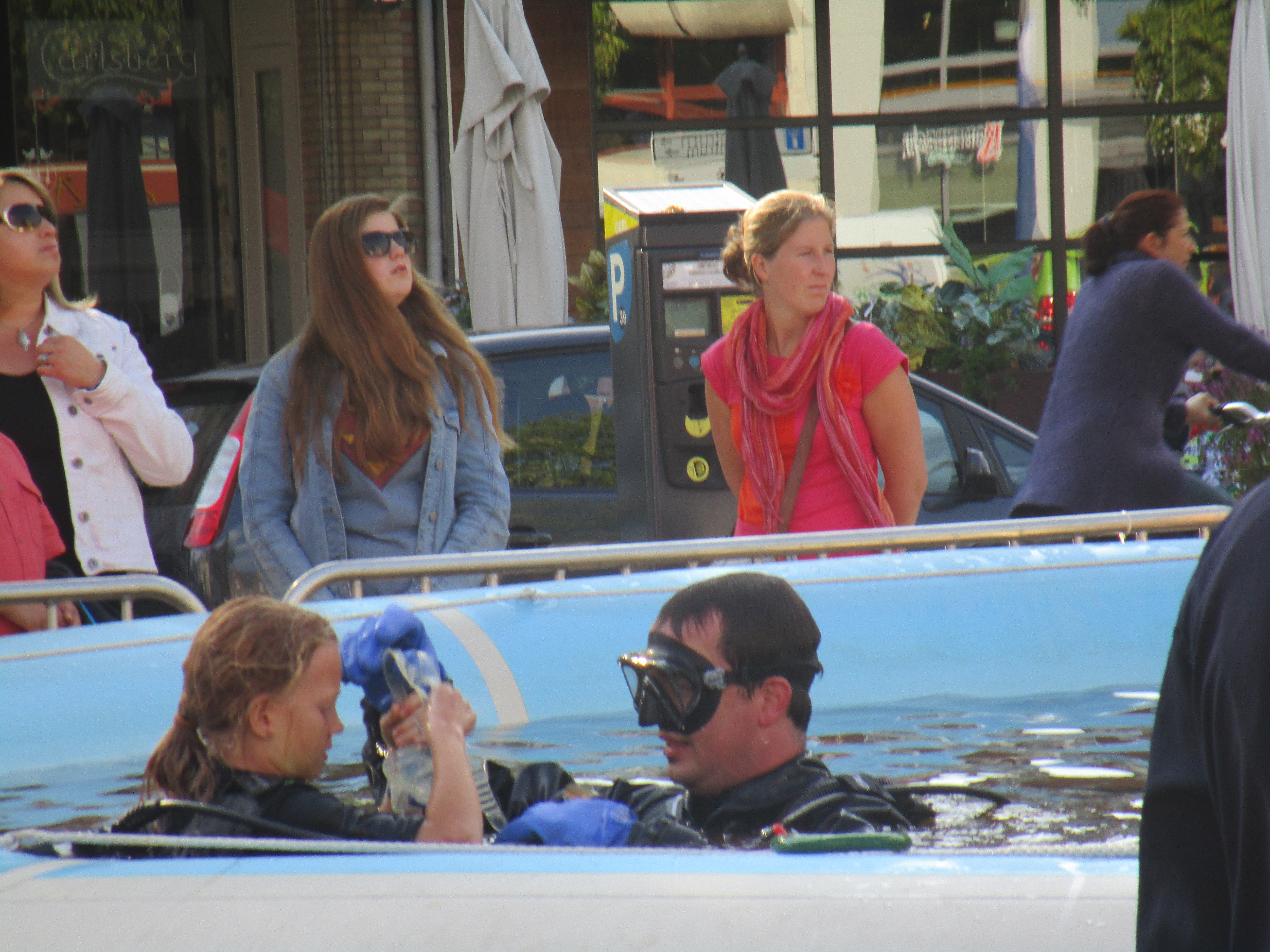 Ook kon je een meemaken hoe het is met zo’n groot duikpak kopje onder te gaan.