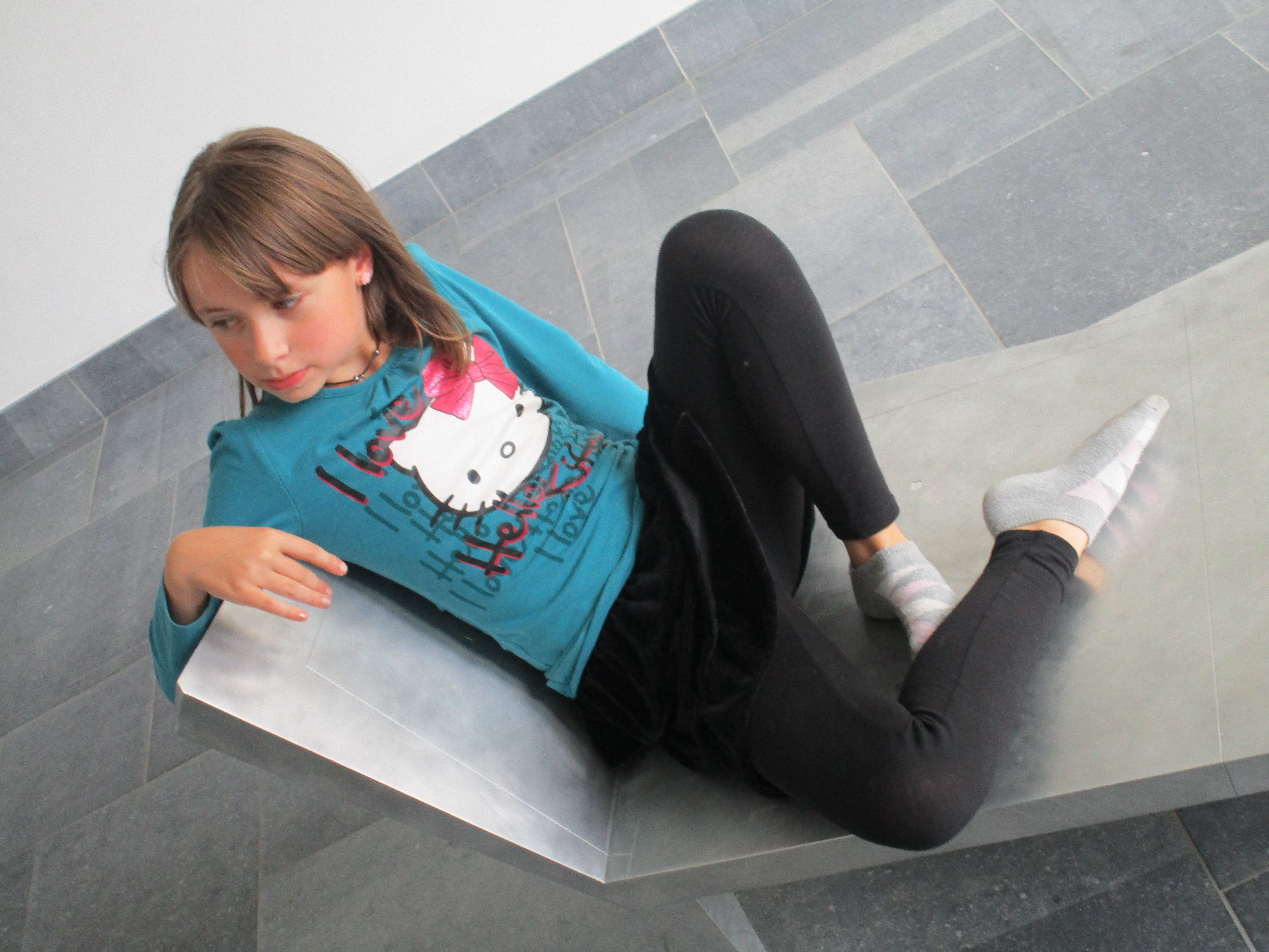 En comfortabel ook niet volgens de bevindingen van onze jongedame die het kunstwerk zorgvuldig testte.