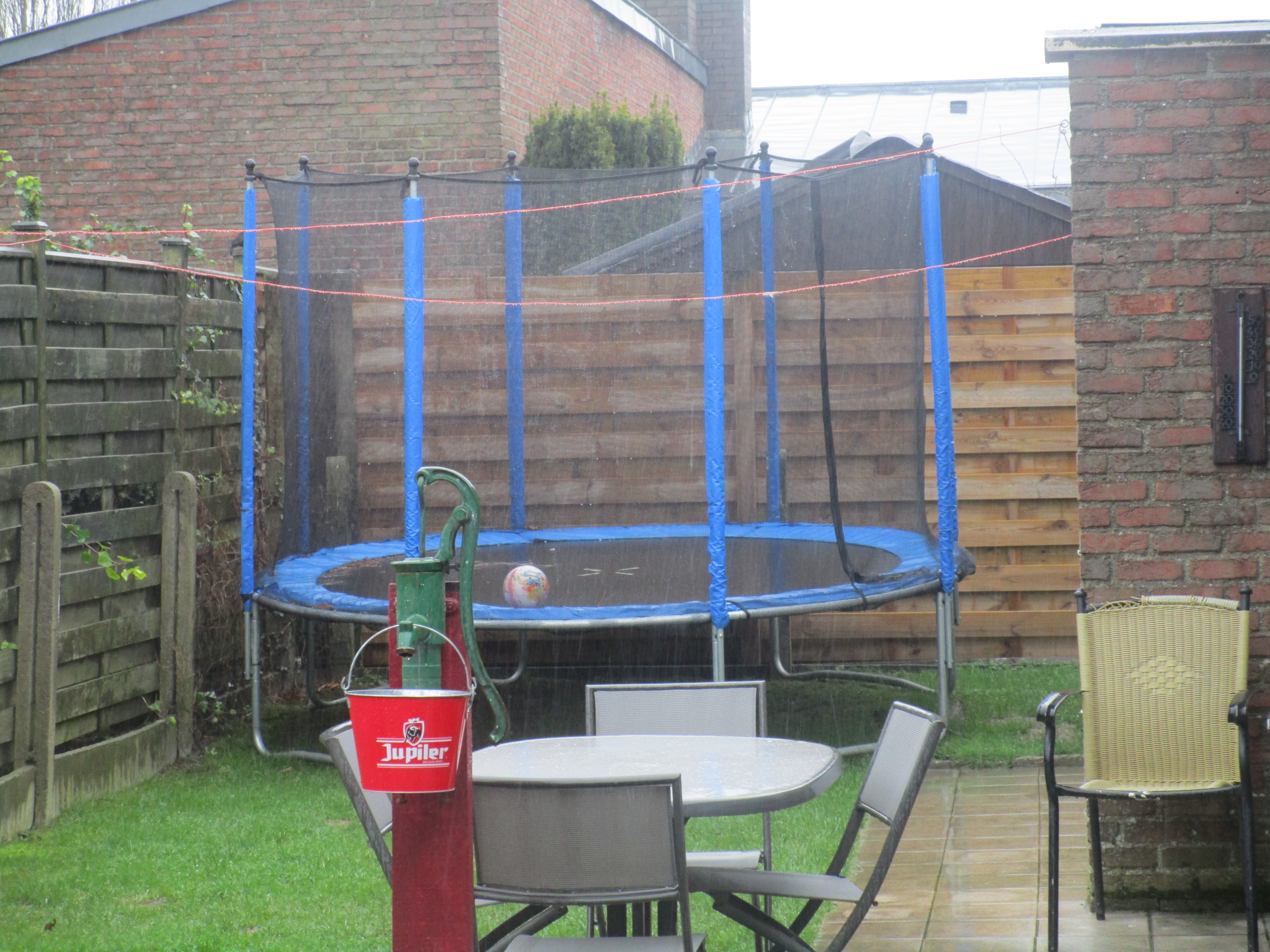 Tussen twee koppen oploskoffie en enkele “dampen” door vertelt ex ons dat de trampoline in de tuin ook weg moet.