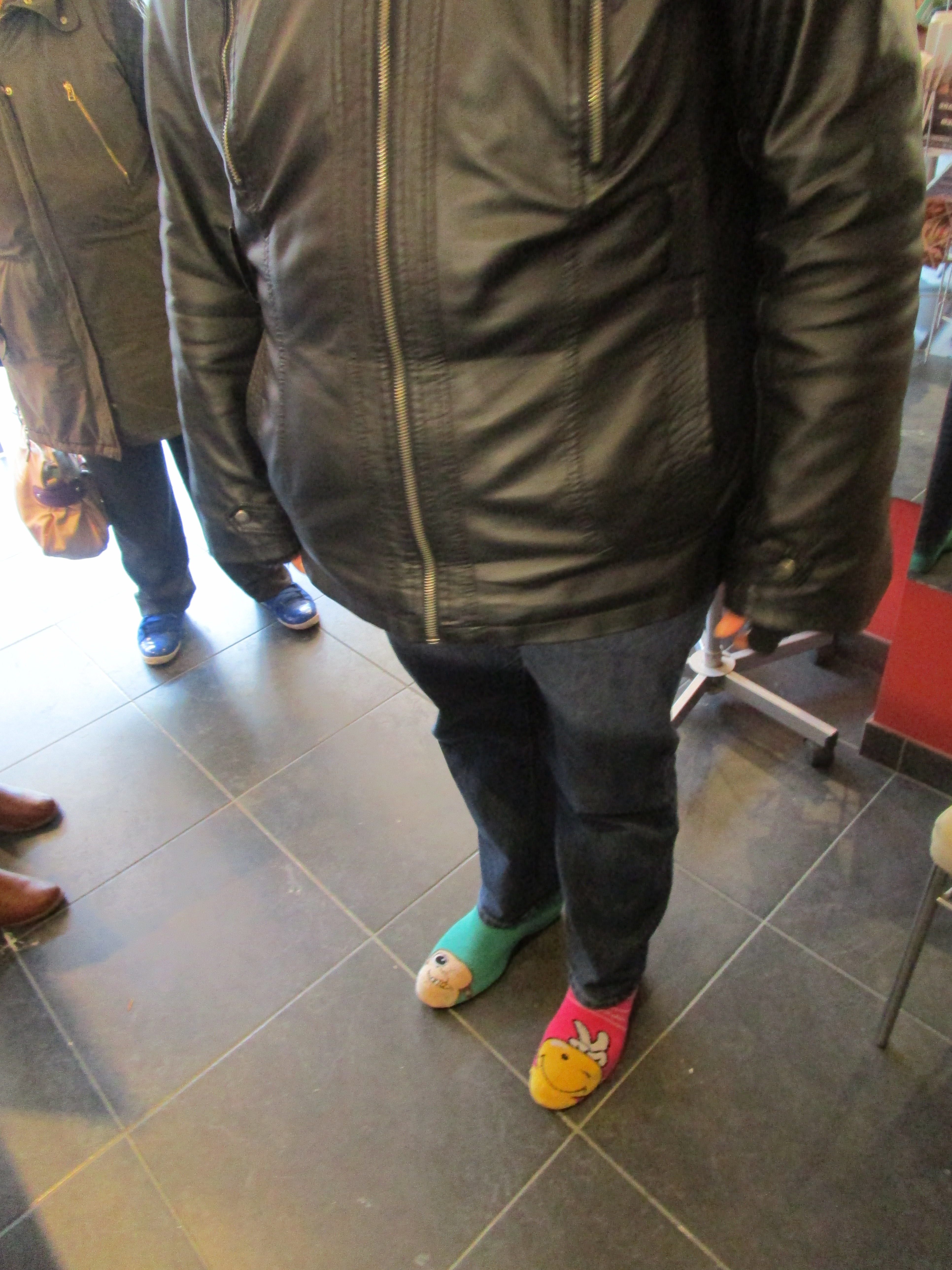 Sokken over de schoenen, daar slojten de sokken heel erg door, en dat is jammer, want ze zijn leuk!