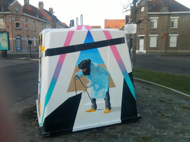 Het staat in ieder geval leuke dan saaie kale bakken! Hier zijn de meeste bakken al ondergronds geplaatst dan is beschildering natuurlijk overbodig