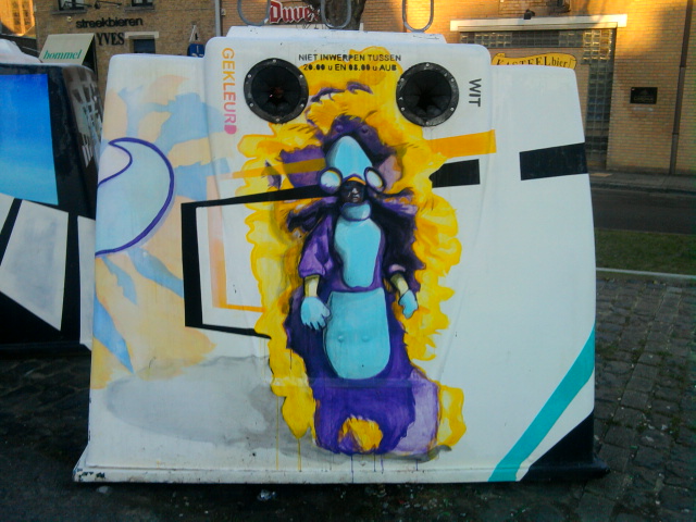 Ik begrijp heus wel hoe jij het bedoelt 🙂 Dit is een beter gezicht dan die saaie grijze of groene containers. Eigenlijk zouden we graffiti-makers moeten uitnodigen om de boel te versieren.