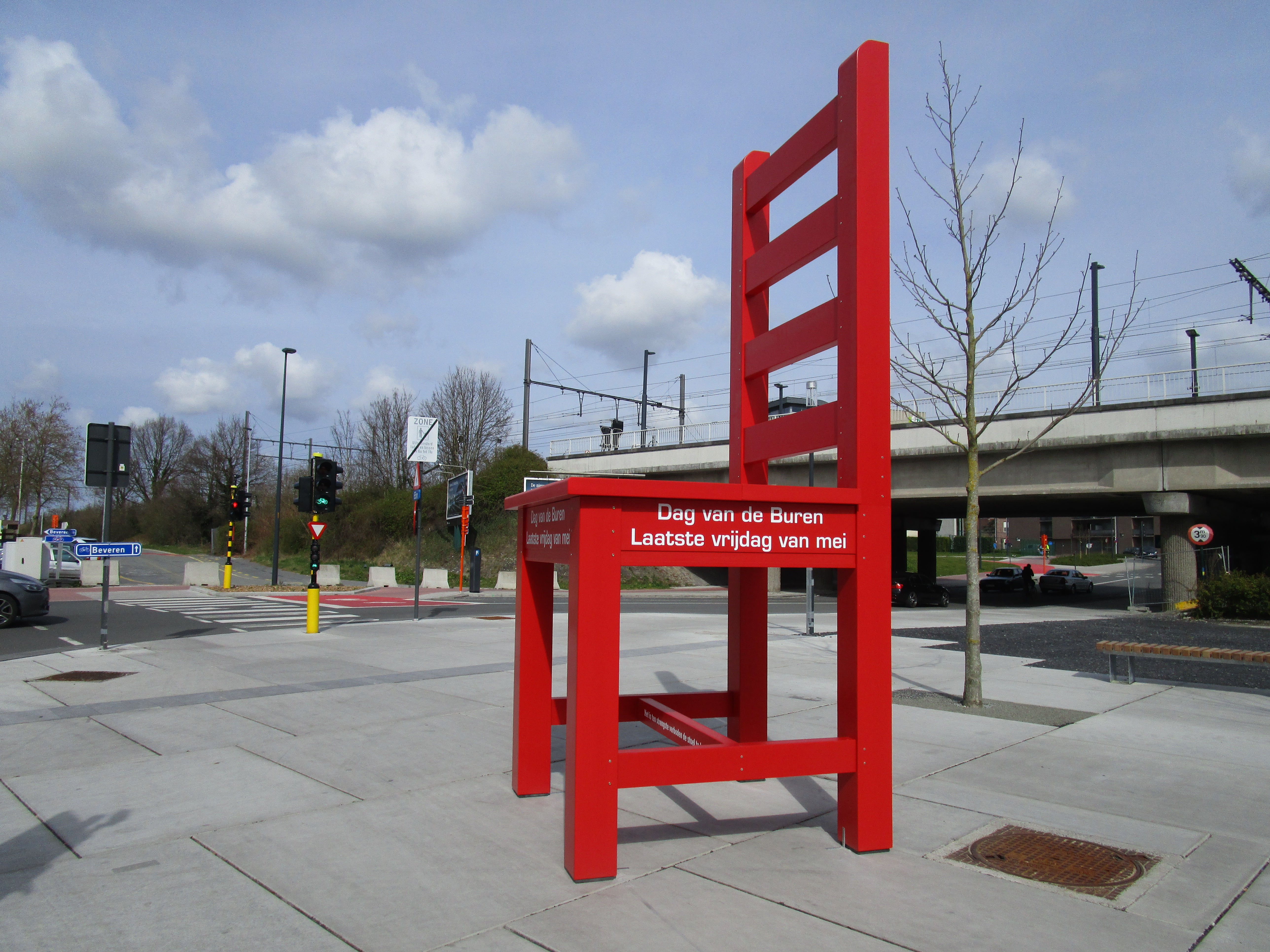 Deze namiddag zag ik een grote rode stoel nabij het station staan.