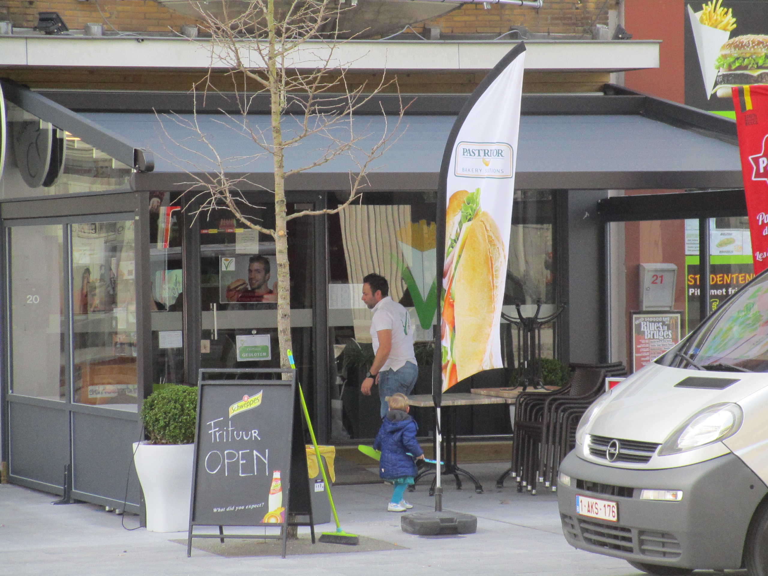 Je hebt daar wel een kleurrijk plein nu en met de frituur naast de deur, goede geur verzekerd. Amaai dat wordt lijnen!