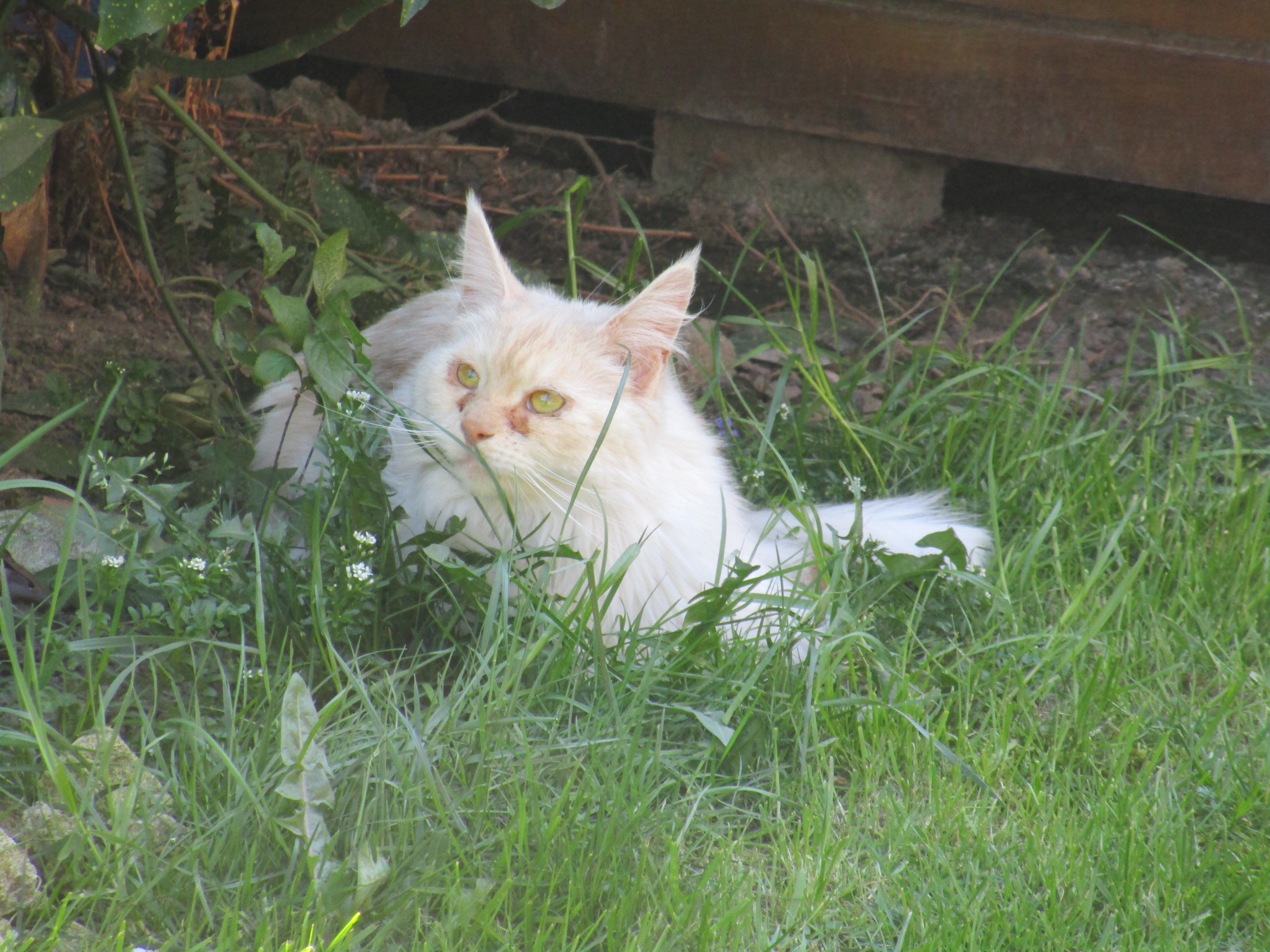 Wat een mooie kat! Je ziet niet zoveel een witte, langharige poes, die moet beslist van iemand zijn… Maar ik hoop voor jullie dat hij/zij weer snel in de tuin zal te zien zijn!