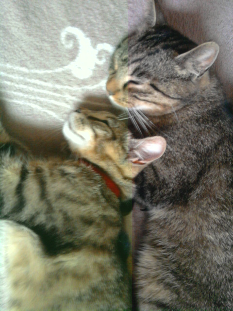 Dit zijn ZImba en Petoeten, broertjes en eigendom van De Grote Baas en haar mama en die liggen er helemaal niet wakker van.