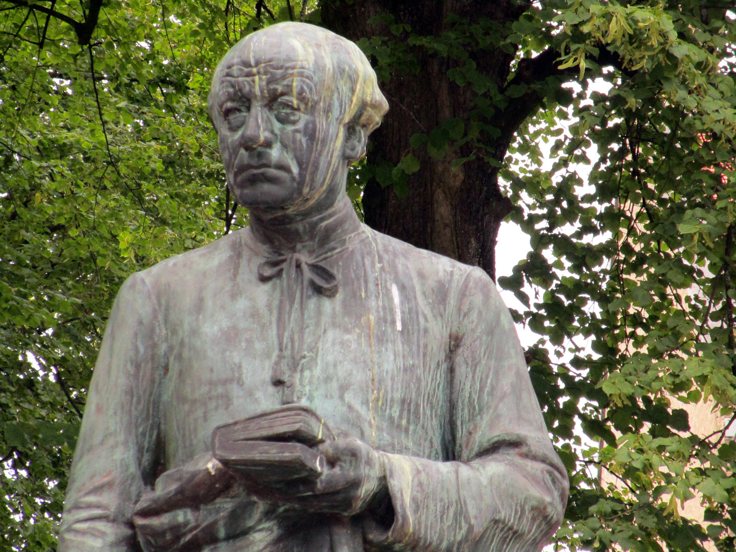 Een beeld van een beeld met een ondergescheten Guido Gezelle.