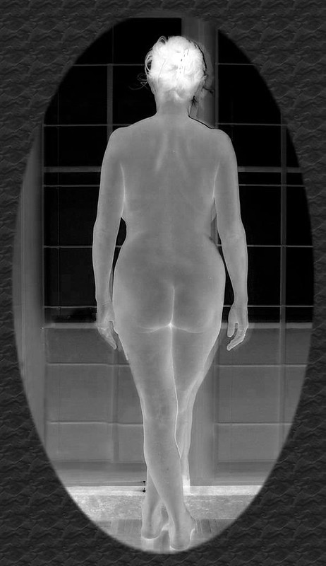 Ik doe het licht uit en maak aanstalten om op te stappen, maar dan dringt het tot mij door dat ik zojuist haar blote rug gezien heb. Ik zal mij wel vergissen. Een kronkel in mijn “dirty mind” !? Ik kijk nogmaals naar buiten om mezelf te bewijzen dat ik me vergist heb. Maar nee hoor, ik zie wel degelijk haar blote rug.
