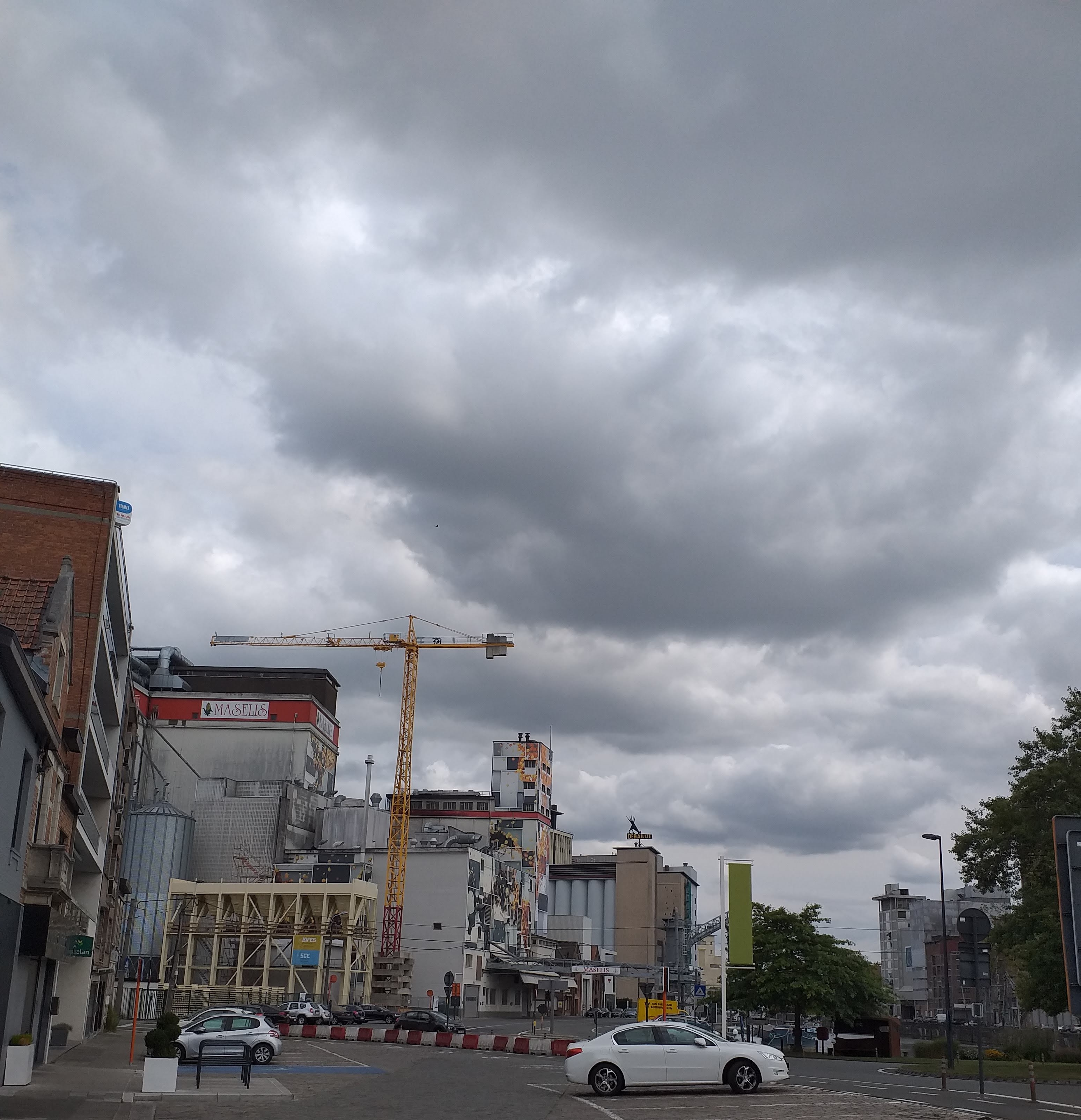Het ziet er onheilspellend uit, niet alleen de wolken maar de buurt lijkt ook niet heel erg geweldig al is dat misschien het gevolg van die bouwwerkzaamheden.
