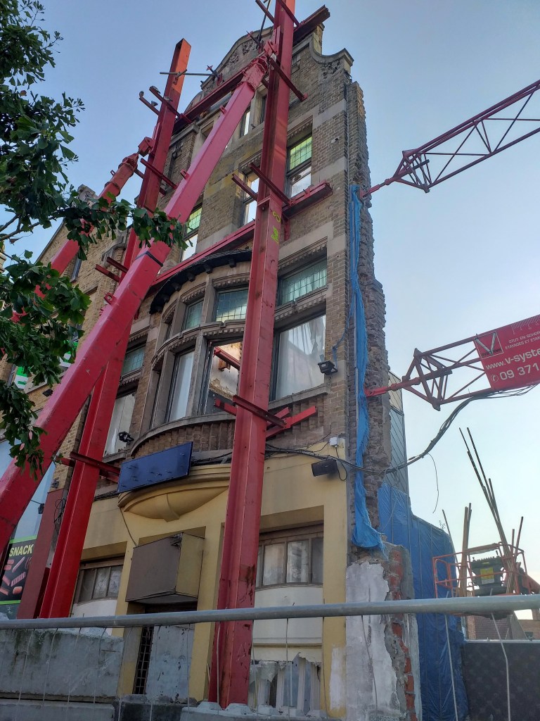 Hopelijk beginnen ze snel, want zo goed zal dat voor die gevel ook niet zijn, zo op zijn eentje (ondanks de stutten).