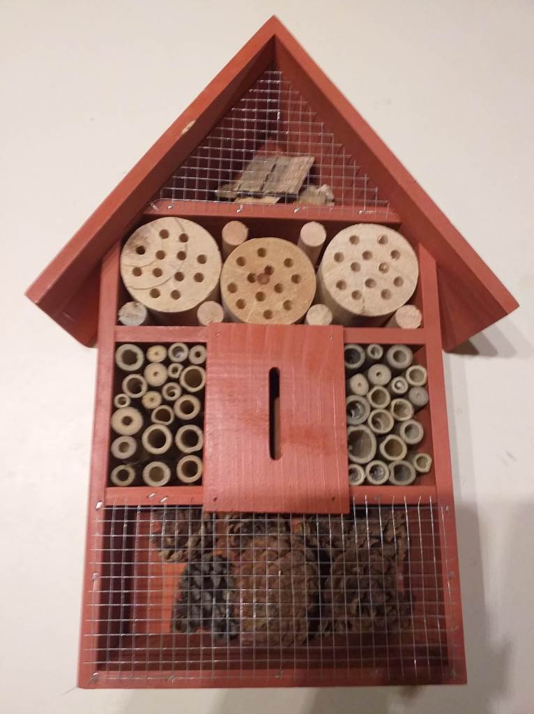 wij hebben zelf zo’n insectenhotel gemaakt, als je ziet waar daar allemaal in komt en gaat…