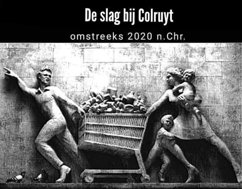 Fantastische foto! Heel fijn dat er nog humor mag en kan! Dus nu zijn er 2 opties: ofwel gaan de Colruyt-klanten na dit alles geen winkel meer binnen wegens genoeg voorraad, ofwel gaan er heel veel mensen rondlopen met overgewicht