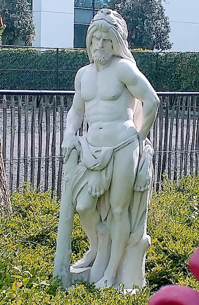 Een rijker gedeelte van de stad. Ze hebben er een woest en stuurs standbeeld neergezet.