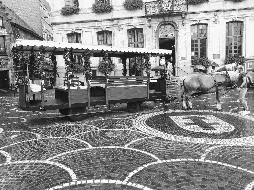 Heel originele koets. Brugge heeft er ook zo’n grote, ingericht als bierdegustatiewagen.